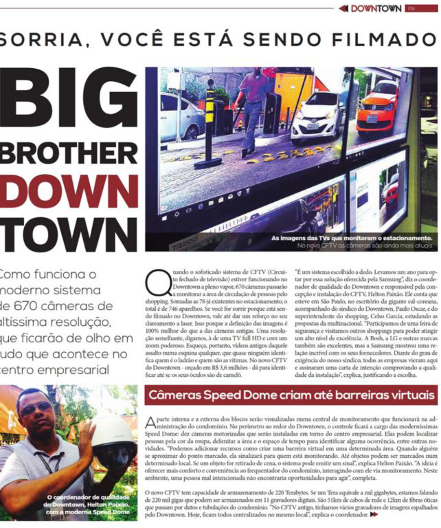 A Centauro realizou um ambicioso projeto de CFTV no Condominio Downtown. Em parceria com a Samsung Techwin, foram instaladas mais de 670 câmeras de altíssima resolução. Entre os diversos tipos de equipamentos, foi desenvolvido um moderno sistema com câmeras Speed Dome que possuem a capacidade de identificar pessoas e delimitar área e espaço de tempo, identificando qualquer tipo de ocorrência no local.